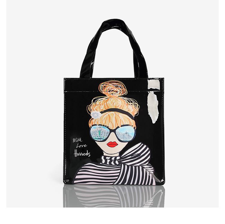 Незабавно разпознаваем и елегантен със стил, малкият черен лакиран купувач от подписната колекция може да се похвали с лъскав екстериор и надпис на лого. Задължителен{0}}сувенир от емблематичния магазин Knightsbridge, той е екологична-алтернатива при пазаруване.